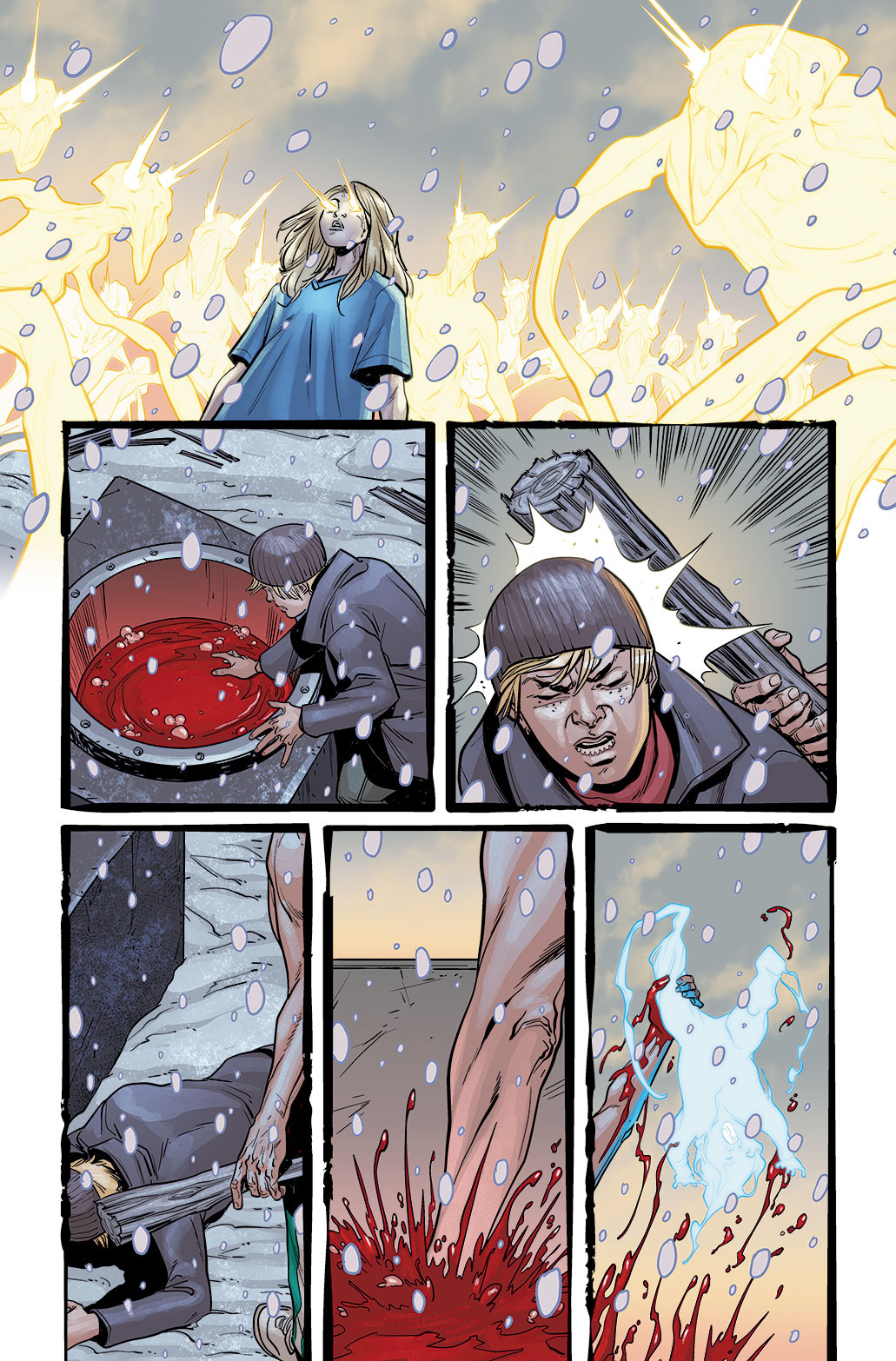 A sample of comic book pages and covers colored by Mark Englert
